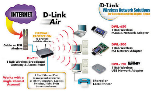 D-Link предлагает оборудование стандарта IEEE 802.11b, объединенное под общим названием D-Link Air.