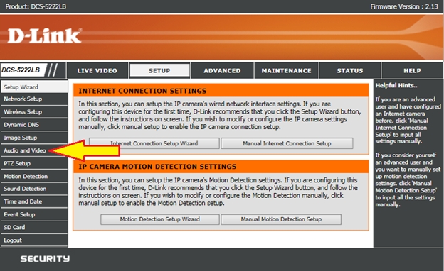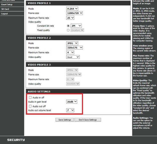 שאלה: Как выполнить настройку микрофона и динамика на камере DCS-5222LB?