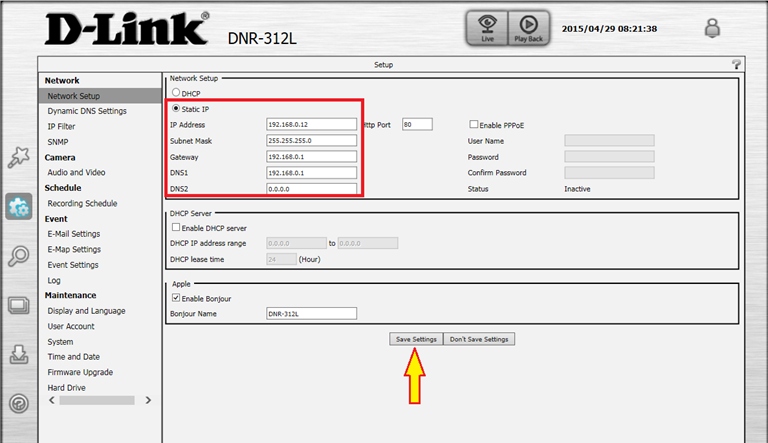 Шаг 5: Введите требуемый IP-адрес регистратора и нажмите кнопку Save Settings (Сохранить настройки).