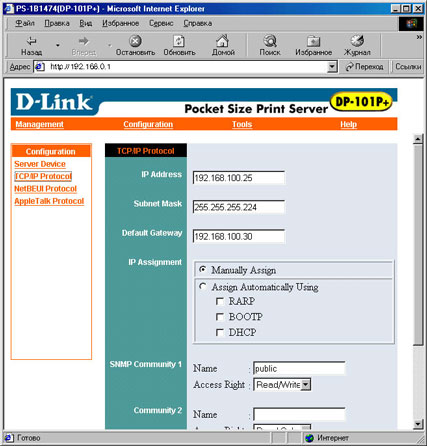 I. Для корректной установки принт-сервера третьего поколения (DP-100+, DP-101P+, DP-300+, DP-301p+) необходимо проделать следующие шаги: