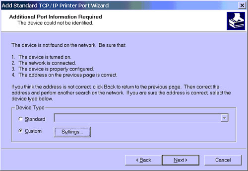 3. Wizard запроситвыбор между Use the following port и Create a new port. Выберите Create a new port.Затем выберите Standard TCP/Ip порт и щелкните Next>.
