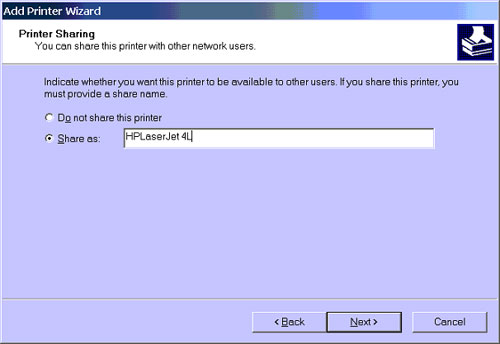 9. Определитесь, хотите ли использовать принтер совместно с другими пользователями сети, и введите соответствующее имя принтера.