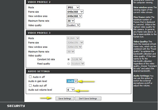 Шаг 5: Чтобы включить микрофон, убедитесь, что в поле Audio in off (Аудио-вход выключен) снят флажок. Чтобы включить динамик, убедитесь, что в поле Audio out off (Аудио-выход выключен) снят флажок. Можно отрегулировать уровень громкости для аудио-входа (микрофон) и аудио-выхода (динамик) с помощью выпадающего меню справа от соответствующего поля.