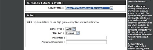 В блоке WIRELESS SECURITY MODE из выпадающего меню выберите тип шифрования: