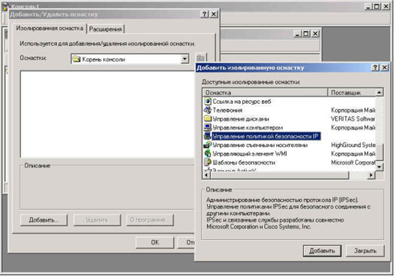 Выполняем Пуск->Выполнить mmc. В появившемся окне Консоль->Добавить/Удалить оснастку. Нажимаем добавить и выбираем Управление политикой безопасности IP, нажимаем Добавить.