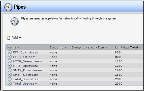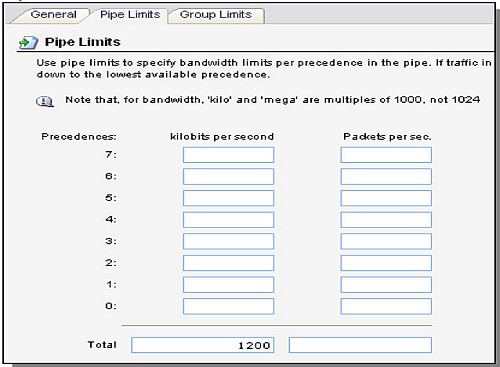 Перейдите в Traffic Management -> Traffic Shaping -> Pipes.