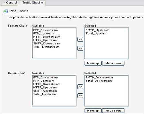 Вкладка Traffic Shaping: