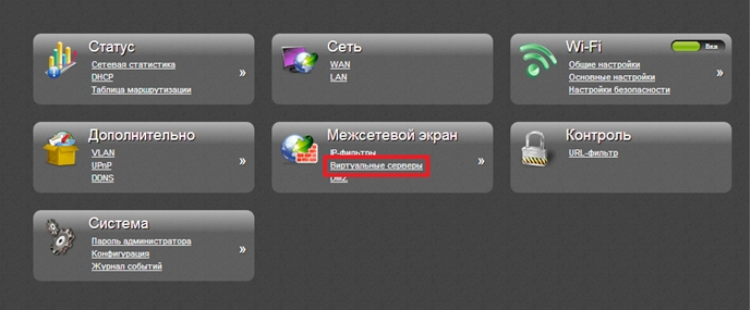 Выберите «Виртуальные серверы» в разделе «Межсетевой экран».