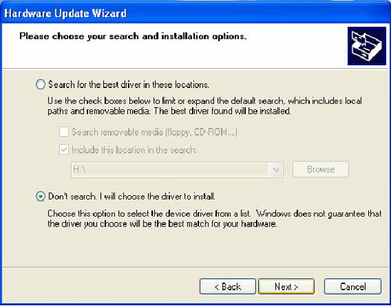В следующем окне откажитесь от автоматического поиска драйвера и нажмите кнопку "Далее".