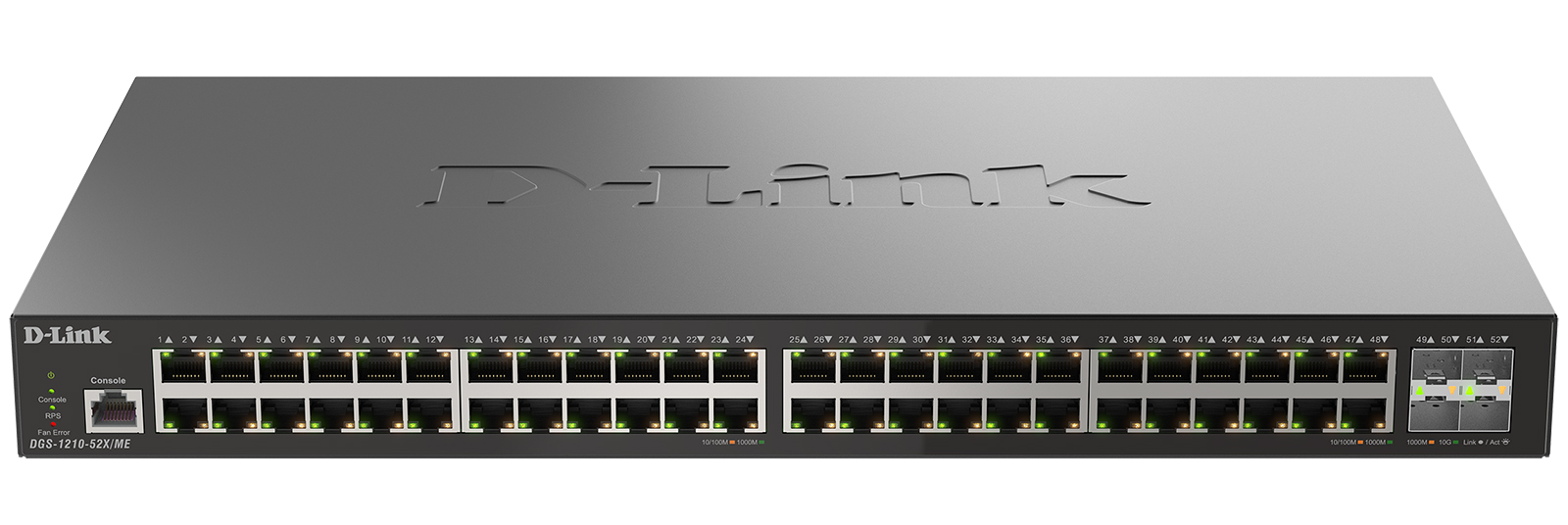 Коммутатор DGS-1210-52X/ME является идеальным решением для применения в сетях Metro Ethernet. Данный коммутатор оснащен 48 портами 10/100/1000Base-T для подключения по витой паре, а также 4 портами 10GBase-X SFP+, применяемыми для организации подключения к высокоскоростной магистрали. Защита от статического электричества 6 кВ обеспечивает устойчивость медных портов к наведенному напряжению, а полный набор функций безопасности и аутентификации защищает сеть от внутренних и внешних угроз. DGS-1210-52X/ME поддерживает Auto Voice VLAN, обеспечивая максимальный приоритет для голосового трафика.