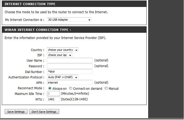 My Internet Connection is – 3G USB Adapter