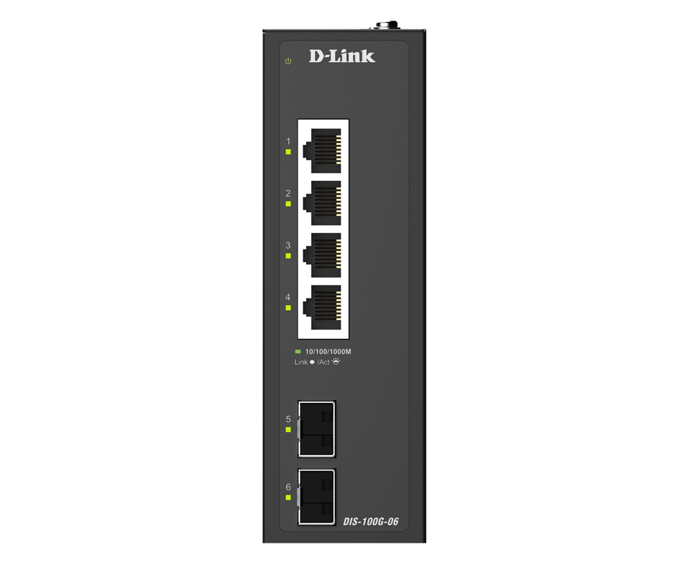 DIS-100G-06 Industrial Switch with 4x10/100/1000Base-T Ports and 2x1000Base-X SFP Ports