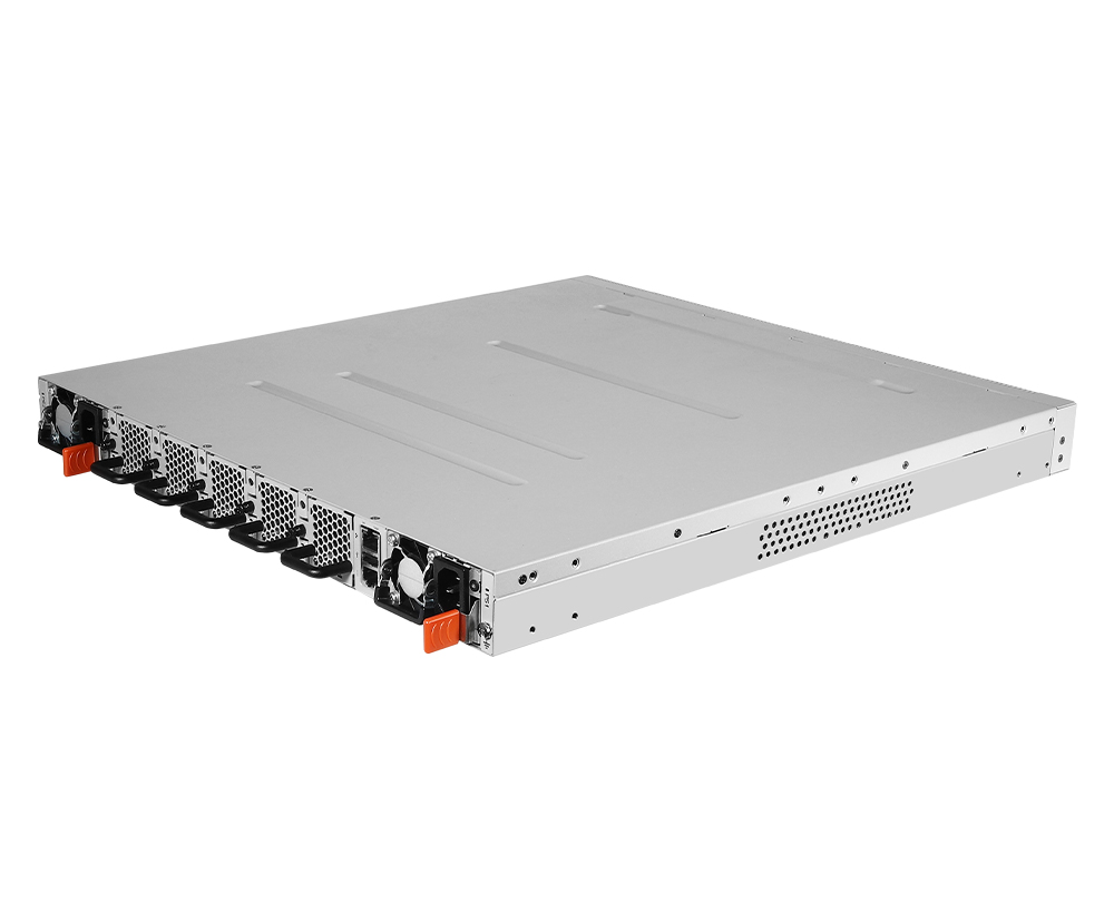 The DQS-5000-56ZS delivers up to 2.0 Tbps (4.0 Tbps full duplex) of non-blocking switching capacity with 48 x 25 Gbps SFP28 and 8 x 100Gbps ports in a compact 1RU, 19-inch rack-mount design. Front-to-back airflow, 2 (1+1) hot-swappable redundant PSUs, and 5 (N+1) hot-swappable fans ensure high reliability and thermal efficiency — ideal for space- and power-constrained micro data centers.