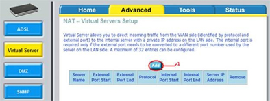 Для создания правила Virtual Server перейдите на страницу Advanced > Virtual Server.
