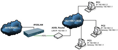 Задача. В локальной сети (см. рис.1) три компьютера, необходимо запретить доступ в Интернет всем компьютерам, кроме одного (PC1).