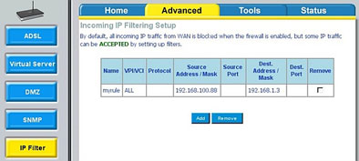 Функция IP Filter позволяет фильтровать проходящий через маршрутизатор трафик по IP-адресам и портам. Рассмотрим некоторые примеры.