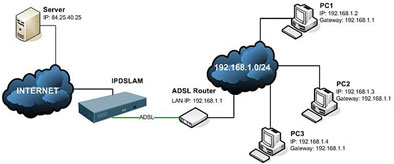 Задача. В локальной сети (см. рис.2) три компьютера. В Интернете находится сервер с IP-адресом 84.25.40.25. Необходимо заблокировать Интернет на всех компьютерах, но при этом разрешить доступ только на этот сервер.
