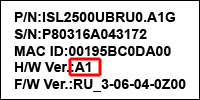 Для того, чтобы правильно определить аппаратную ревизию модема посмотрите на этикетку, расположенную на нижней стороне устройства. Найдите на ней строку, которая начинается на "H/W Ver.:". Следующие буква и цифра указывают на аппаратную ревизию.