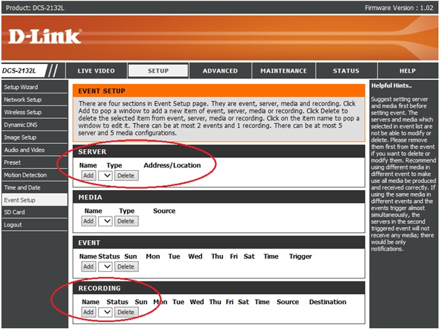 2. Перейдите на вкладку SETUP (вверху) а затем выберите раздел Event Setup (слева)