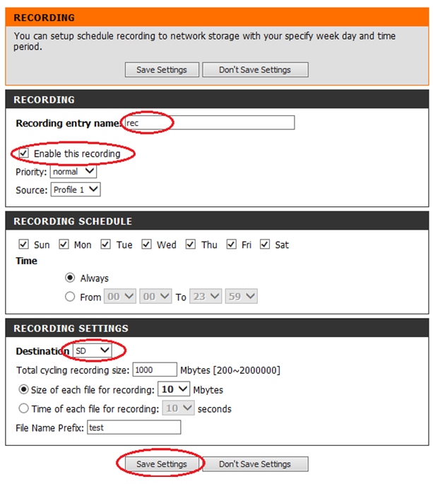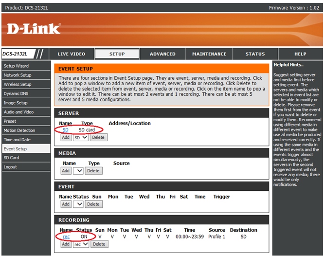 Jautājums: Как настроить непрерывную запись видео на сетевое хранилище (samba сервер) или SD карту с камеры DCS-2132L?