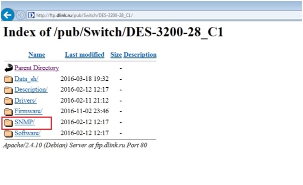 Скачать MIB для коммутатора D-link можно на ftp сервере d-link: