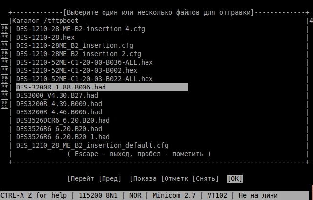 Рассмотрим загрузку прошивки на примере коммутатора DES-3200rev.A1.