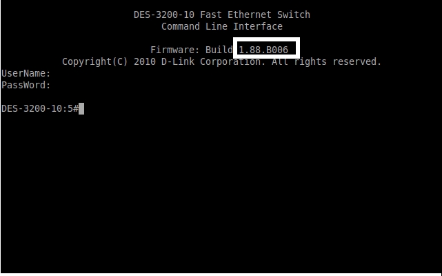 6. Переподключаемся к коммутатору на скорости 9600 и убеждаемся, что прошивка обновлена корректно.