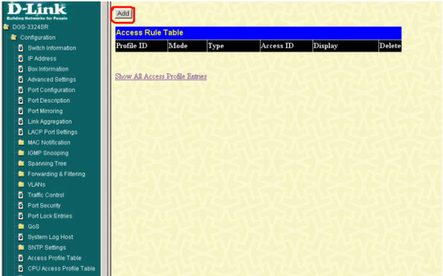 config access_profile profile_id 1 add access_id 40 ip dscp 20 port 24 permit priority 5 replace_priority