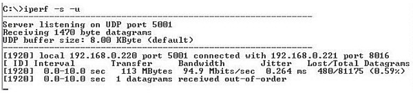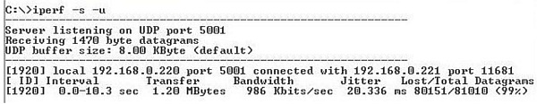 Iperf –s -u