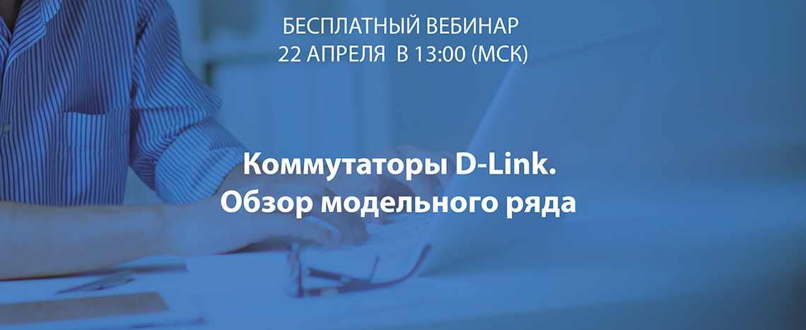 Москва, Россия, 20 апреля 2020 года. Компания D-Link приглашает на бесплатный вебинар «Коммутаторы D-Link. Обзор модельного ряда», который состоится в среду, 22 апреля 2020 года, в 13:00 по московскому времени.