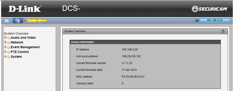 Шаг 1. Откройте Web-браузер Internet Explorer и введите в адресной строке IP-адрес камеры (по умолчанию 192.168.0.20). Нажмите Enter.