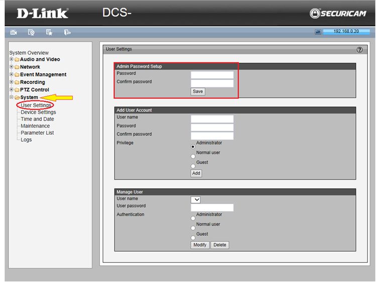 Вопрос: Как задать пароль администратора на камере DCS-3010?