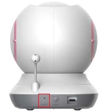 Шаг 1: Не выключая питание устройства, с помощью разогнутой скрепки нажмите кнопку RST (сброс) на задней панели камеры.