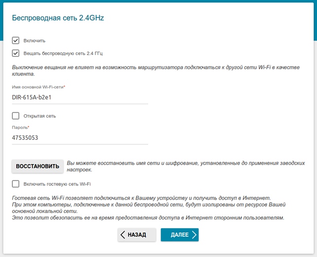 Здесь задаем название и пароль и нажимаем “Далее”
