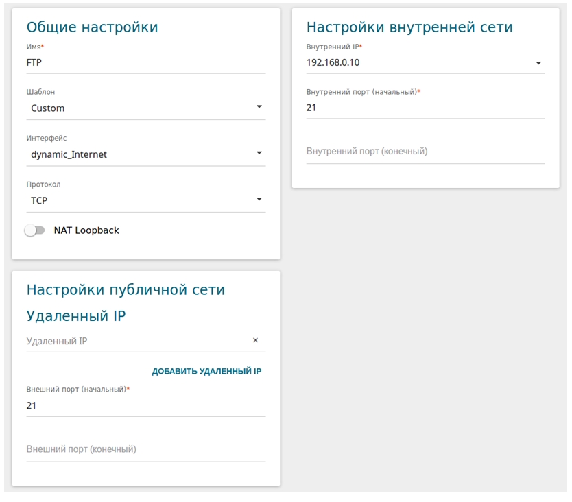 Удаленный IP - IP-адрес сервера, находящегося во внешней сети (в большинстве случаев данное поле необходимо оставить пустым).