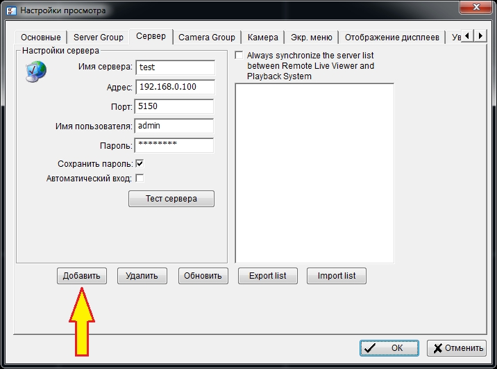 Шаг 5. Для добавления сервера в список доступных, нажмите кнопку Добавить.