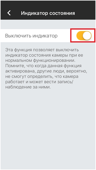 5. Установите переключатель Выключить индикатор в правое положение.