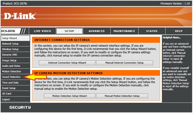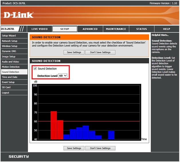 Вопрос: Как настроить обнаружение звука на камере DCS-2670L?