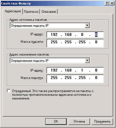 Адрес источника пакетов - Определенная подсеть IP