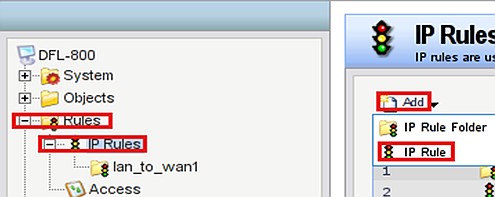 Выберите Rules → IP Rules и нажмите кнопку Add, выберите IP Rule.