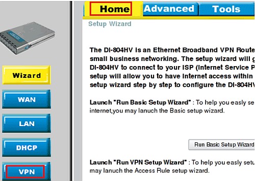 Выберите на верху вкладку HOME, слева меню VPN.
