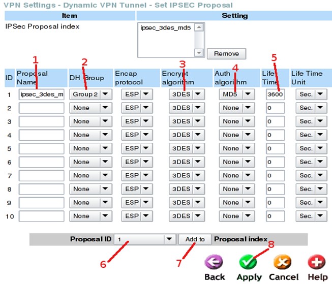 Шаг 1: В поле Proposal Name укажите ipsec_3des_md5