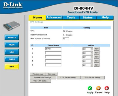 В этом разделе содержится информация о том, как настроить и использовать технологии, указанные выше. Более детальную информацию обо всех параметрах настройки IPSec на маршрутизаторе DI-804HV можно получить в руководстве пользователя.