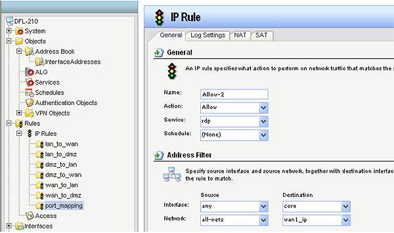 Примечание: Если сеть WAN1 настроена для DSL(PPPoE) или DHCP, выберите сетью назначения (Destination Network) ip_wan1. Если сеть WAN1 настроена как Static, выберите сетью назначения wan1_ip.