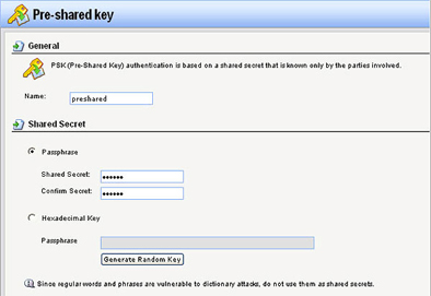 • Name: введите выбранное имя (в этом примере preshared)