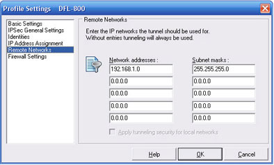 • Network addresses: введите IP-адрес сети удаленного межсетевого экрана