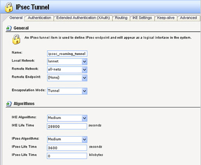 • Name: введите выбранное имя (в этом примере ipsec_roaming_tunnel)