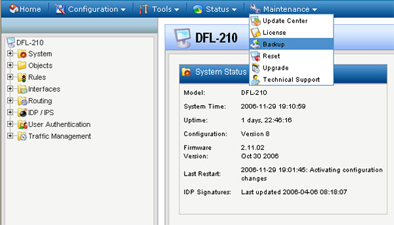Примечание: Для последующей успешной загрузки сохраненного конфигурационного файла, следует загружать этот файл только на межсетевой экран с той же версией прошивки.