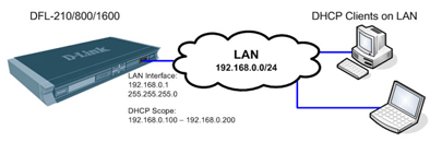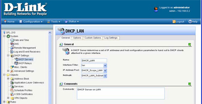 Шаг 6. Определите имя DHCP-сервера, например, DHCP_LAN. Выберите в поле Interface Filter значение "LAN" (интерфейс LAN Межсетевого экрана). В поле IP Address Pool выберите значение "DHCP_Scope_LAN", а в поле Netmask - "DHCP_LAN_Subnet" (эти адреса были созданы ранее в шагах 3 и 4).