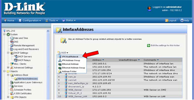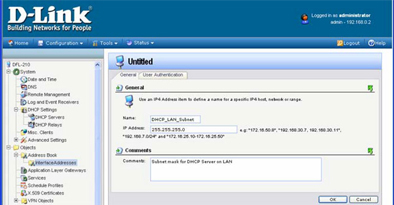 Шаг 4. На странице Interface Addresses добавьте новый "IP4 Host/Network" для маски подсети DHCP. Присвойте новой адресной записи имя, например, DHCP_ LAN _Subnet. Определите маску подсети, используемую LAN, например, "255.255.255.0". Кликните по кнопке OK.